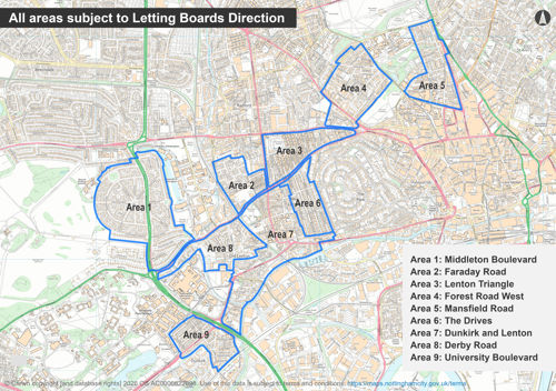 Detailed below is an overview map of the 9 areas that are proposed to be subject to Letting Board restrictions